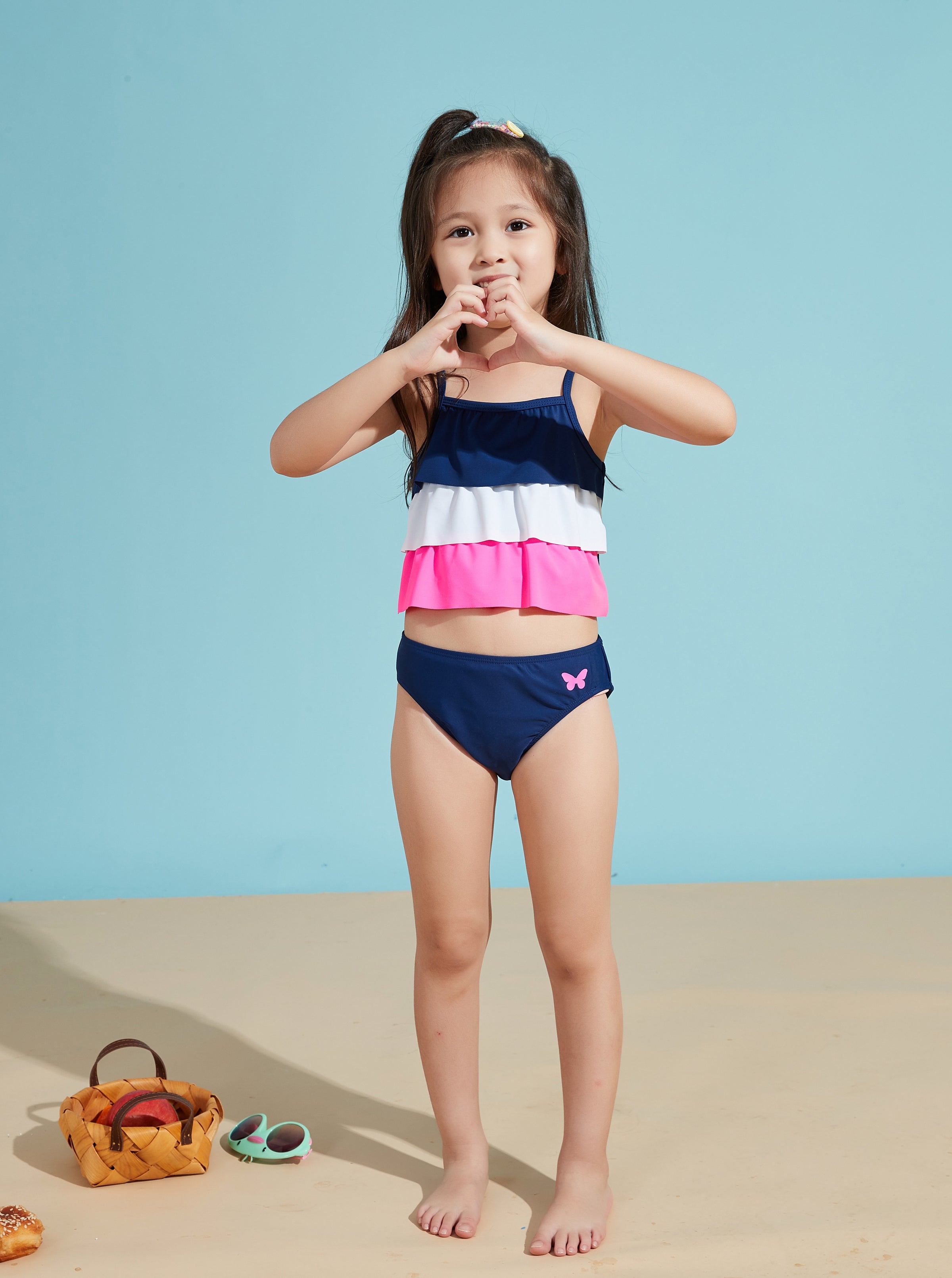 A fun choice for her next holiday, this tankini set is created in stretchy swim fabric with Three layers Ruffle Blocked Colour.
